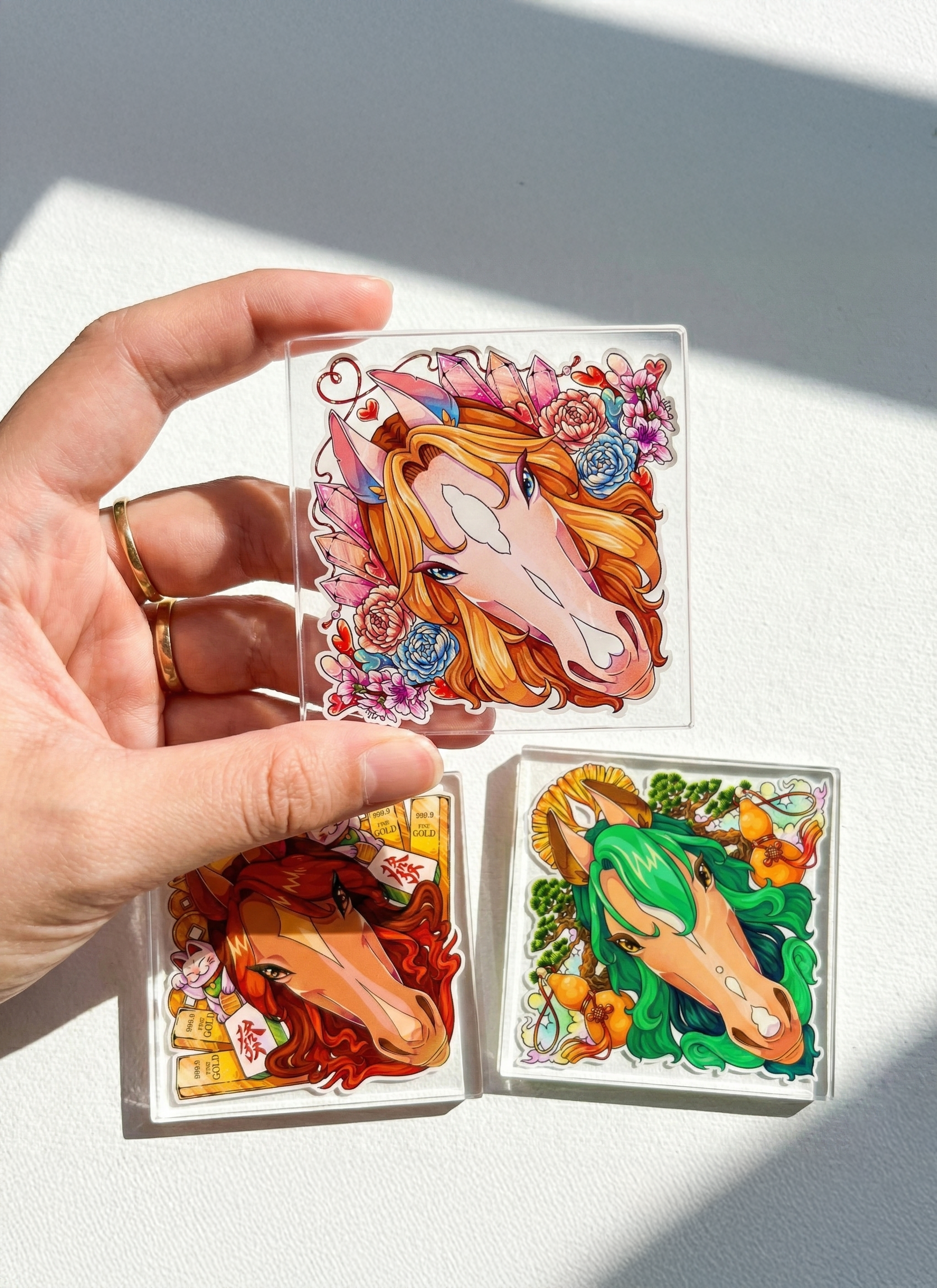 我們將傳統生肖文化重新解構,推出全新**「馬年轉運站」系列——開運三寶壓克力磁鐵**。