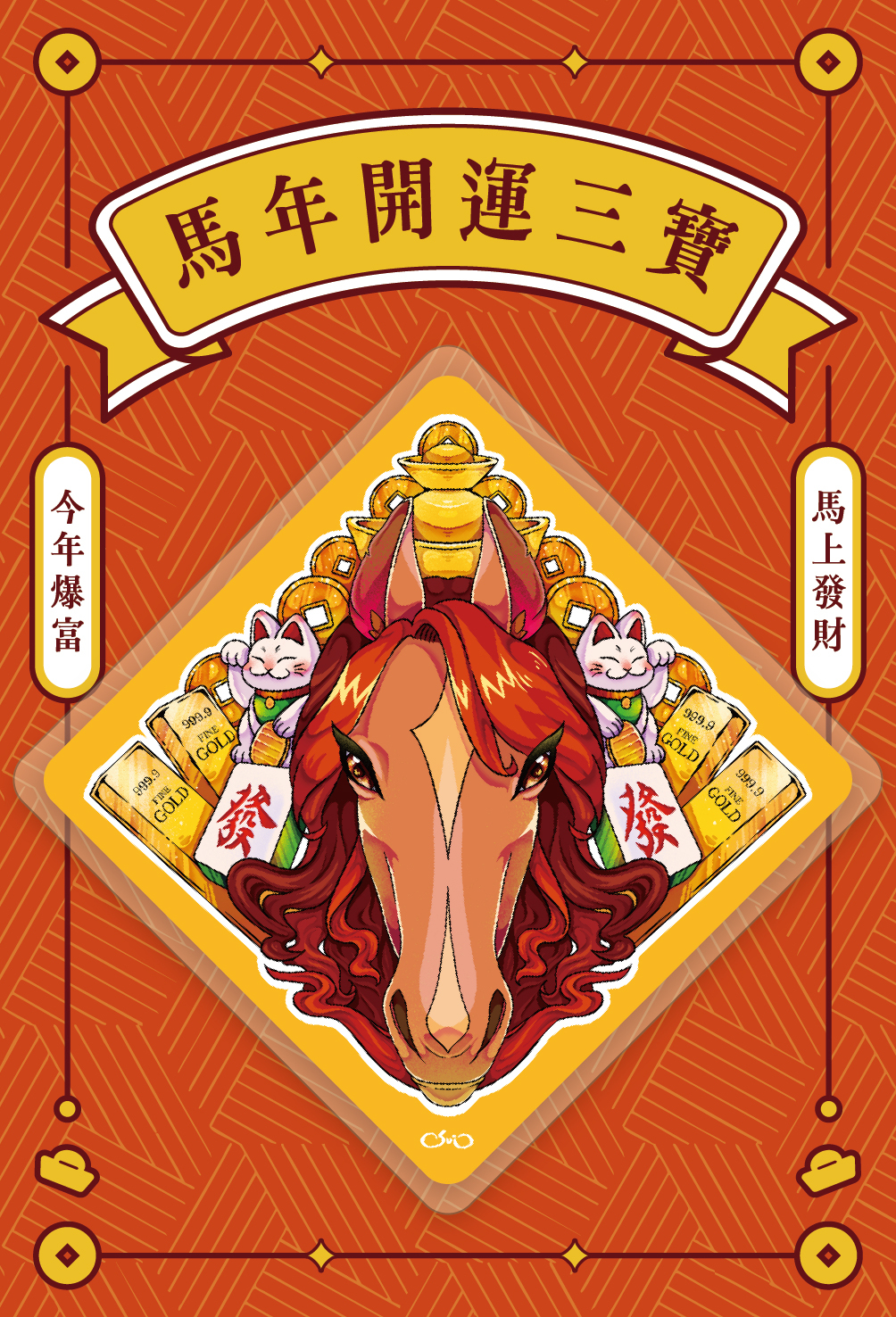 我們用鮮豔的色彩與細膩的插畫,將大家最渴望的三種願望:財富、健康(福祿)、愛情,具象化為三匹風格迥異的神馬。